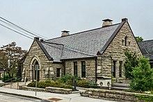 The current East Greenwich Free Library, at 82 Pierce Street, was endowed by Daniel Albert Peirce in 1913.[16] Pierce was a local resident and co-founder of the Narragansett Electric Company. The library building is built of granite from Coventry, Rhode Island, and was dedicated on June 29, 1915.[16] The library includes special collections on Rhode Island history and genealogy.[16]