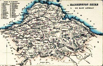 Haddingtonshire has ancient origins and is named in a charter of 1139 as Hadintunschira[1] and in another of 1141 as Hadintunshire.[2] Three of the county's towns were designated as royal burghs: Haddington, Dunbar, and North Berwick.