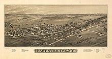 East Syracuse is an incorporated village and a suburb of the City of Syracuse in eastern Onondaga County, New York. United States. As of the 2010 U.S. census, the village had a population of 3,084. It is located immediately east of Syracuse, in the town of DeWitt.