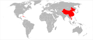 The Eastern Bloc, also known as the Communist Bloc, the Socialist Bloc and the Soviet Bloc, was the group of communist states of Central and Eastern Europe, East Asia, and Southeast Asia under the hegemony of the Soviet Union (USSR) that existed during the Cold War (1947–1991) in opposition to the capitalist Western Bloc. In Western Europe, the term Eastern Bloc generally referred to the USSR and its satellite states in the Comecon (East Germany, Poland, Czechoslovakia, Hungary, Romania, Bulgaria, and Albania);[a] in Asia, the Soviet Bloc comprised the Mongolian People's Republic, the Socialist Republic of Vietnam, the Lao People's Democratic Republic and the People's Republic of Kampuchea, the Democratic People's Republic of Korea, and the People's Republic of China (before the Sino-Soviet split in 1961).[1][2][3][4][5] In the Americas, the Communist Bloc included the Central America and the Caribbean Republic of Cuba since 1961, Nicaragua and Grenada.[6]