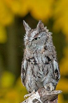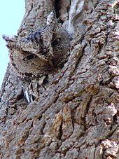 The eastern screech owl (Megascops asio) or eastern screech-owl, is a small owl that is relatively common in Eastern North America, from Mexico to Canada.[1][2] This species is native to most wooded environments of its distribution, and more so than any other owl in its range, has adapted well to manmade development, although it frequently avoids detection due to its strictly nocturnal habits.[3]
