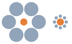 Recent work suggests that two other critical factors involved in the perception of the Ebbinghaus illusion are the distance of the surrounding circles from the central circle and the completeness of the annulus, which makes the illusion comparable in nature to the Delboeuf illusion. Regardless of relative size, if the surrounding circles are closer to the central circle, the central circle appears larger and if the surrounding circles are far away, the central circle appears smaller. While the distance variable appears to be an active factor in the perception of relative size, the size of the surrounding circles limits how close they can be to the central circle, resulting in many studies confounding the two variables.[1]