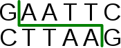 In molecular biology it is used as a restriction enzyme. EcoRI creates 4 nucleotide sticky ends with 5' end overhangs of AATT. The nucleic acid recognition sequence where the enzyme cuts is G↓AATTC, which has a palindromic, complementary sequence of CTTAA↓G. Other restriction enzymes, depending on their cut sites, can also leave 3' overhangs or blunt ends with no overhangs.