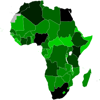 The economy of Africa consists of the trade, industry, agriculture, and human resources of the continent. As of 2019, approximately 1.3 billion people[1] were living in 54 countries in Africa. Africa is a resource-rich continent.[3][4] Recent growth has been due to growth in sales in commodities, services, and manufacturing.[5] West Africa, East Africa, Central Africa and Southern Africa in particular, are expected to reach a combined GDP of $29 trillion by 2050.[6]