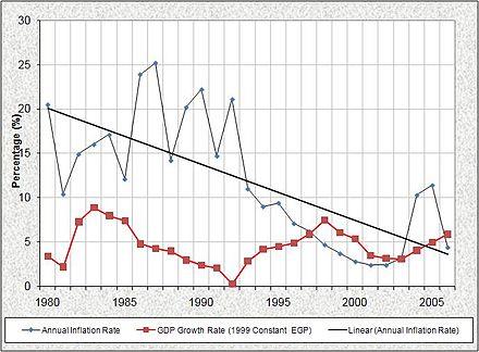- ^ Source:, Ministry of Finance and Central Bank of Egypt, as analyzed in Nawar, Abdel-Hameed (2008). "Anti-Inflation Policy Array in Egypt". SSRN 1115642.