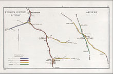 Prior to the construction of the Eden Valley Railway, in the 1840s, several schemes had been proposed which would have run to the Eden Valley; one was the York & Carlisle Junction Railway,[1] backed by the Great North of England Railway, which would have run from Northallerton to Barnard Castle then across the Pennines to Kirkby Stephen, after which two branches would have been formed to connect with the Lancaster and Carlisle Railway; one to Tebay and the other to Clifton.[2] Another similar scheme was the Northumberland & Lancashire Union which would have run from Gateshead near Newcastle upon Tyne to Barnard Castle, and then as the York & Carlisle line across the Pennines via Kirkby Stephen to Tebay.[1] Additionally the Yorkshire and Glasgow Union Railway was planned to run west from Thirsk through Wensleydale to Hawes, then north through the Mallerstang Valley to Kirkby Stephen, and then through the Eden Valley to Clifton via Appleby-in-Westmorland.[1][2] Both the Yorkshire & Glasgow Union and part of the York & Carlisle Junction to Tebay were empowered by acts of Parliament in 1845[3] but the end of the Railway bubble of the 1840s meant that they were not built.