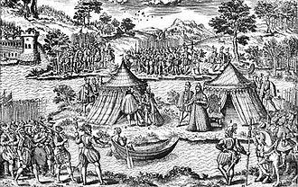 Shortly after the assassination, Catherine travelled to Orléans, desiring to see the Constable.[9] To establish the peace in this new opportunity, the two captured prisoners Condé and Constable Montmorency were released from their respective captors to work out terms on March 8, under the supervision of Catherine de Medici.[10] On the same day the two would hold a conference to bring about the peace, and several weeks later on March 19, the Peace of Amboise, having received the assent of the royal council, would be decreed by the King.[11]