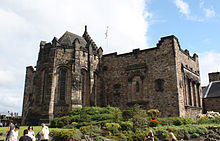 The oldest building in the castle and in Edinburgh is the small St. Margaret's Chapel.[4] One of the few 12th-century structures surviving in any Scottish castle,[42] it dates from the reign of King David I (r.1124–1153), who built it as a private chapel for the royal family and dedicated it to his mother, Saint Margaret of Scotland, who died in the castle in 1093. It survived the slighting of 1314, when the castle's defences were destroyed on the orders of Robert the Bruce, and was used as a gunpowder store from the 16th century, when the present roof was built. In 1845, it was "discovered" by the antiquary Daniel Wilson, while in use as part of the larger garrison chapel, and was restored in 1851–1852.[55] The chapel is still used for religious ceremonies, such as weddings.[137]