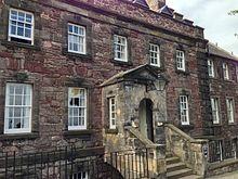 South of the Governor's House are the New Barracks, completed in 1799 to house 600 soldiers, and replacing the outdated accommodation in the Great Hall. They now house the Regimental Headquarters of the Royal Regiment of Scotland and the Regimental Headquarters of the Royal Scots Dragoon Guards (Carabiniers and Greys) as well as the Royal Scots Dragoon Guards Museum. The latter was opened in 1995 by the regiment's Colonel, Queen Elizabeth II.[130] Also nearby, in the former Royal Scots drill hall, constructed in 1900, is the Regimental Museum of the Royal Scots (The Royal Regiment).[131] The military prison was built in 1842 as a detention block for the castle garrison and was extended in the 1880s. It was last used in 1923, when the garrison moved to the city's Redford Barracks.[107]