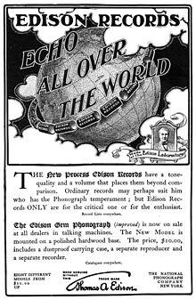 - ^ "Arthur Walsh stated to Charles Edison on October 12, 1929 "on or about 1912 the Edison Industries began to manufacture and sell the disc type of record and from that date to this, as far as I can estimate, it has always been a losing business", noting a loss of over $1.3 million over the previous five years". Mainspringpress.com. Retrieved 2014-09-17.
