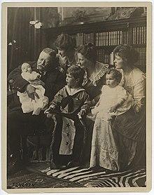 Roosevelt longed for more children even after the birth of her fifth child, Quentin.[10] She suffered two miscarriages as first lady.[10] She had a complicated relationship with her stepdaughter, Alice.[2] In later years, Alice expressed admiration for her stepmother's sense of humor and stated that they had shared similar literary tastes. In her autobiography Crowded Hours, Alice wrote of Edith, "That I was the child of another marriage was a simple fact and made a situation that had to be coped with, and Mother coped with it with a fairness and charm and intelligence which she has to a greater degree than almost any one else I know."[18]