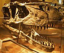 In 1992, fossils of a large theropod found at Como Bluff in Wyoming, containing skull, shoulder girdle, pelvis and rib elements, were named by Robert T. Bakker et al. as the species Edmarka rex. Bakker et al were impressed with the size of Edmarka, noting that it "would rival T. rex in total length," and viewing this approximate size as "a natural ceiling for dinosaurian meat-eaters."[6] This was often considered a junior synonym of Torvosaurus.[7] The same site has rendered comparable remains for which the nomen nudum Brontoraptor has been used.[8][9] Most researchers now regard both specimens as belonging to Torvosaurus tanneri.[1]
