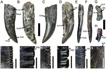 22. ^ Carrano, Benson and Sampson, 2012. The phylogeny of Tetanurae (Dinosauria: Theropoda). Journal of Systematic Palaeontology. 10(2), 211-300