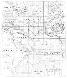 In 1698, Halley was given command of the Paramour, a 52 feet (16 m) pink, so that he could carry out investigations in the South Atlantic into the laws governing the variation of the compass. On 19 August 1698, he took command of the ship and, in November 1698, sailed on what was the first purely scientific voyage by an English naval vessel. Unfortunately problems of insubordination arose over questions of Halley's competence to command a vessel. Halley returned the ship to England to proceed against officers in July 1699. The result was a mild rebuke for his men, and dissatisfaction for Halley, who felt the court had been too lenient.[27] Halley thereafter received a temporary commission as a Captain in the Royal Navy, recommissioned the Paramour on 24 August 1699 and sailed again in September 1699 to make extensive observations on the conditions of terrestrial magnetism.[8] This task he accomplished in a second Atlantic voyage which lasted until 6 September 1700, and extended from 52 degrees north to 52 degrees south.[8] The results were published in General Chart of the Variation of the Compass (1701).[8] This was the first such chart to be published and the first on which isogonic, or Halleyan, lines appeared.[28][29] The use of such lines inspired later ideas such as those of isotherms by Alexander von Humboldt in his maps.[30]