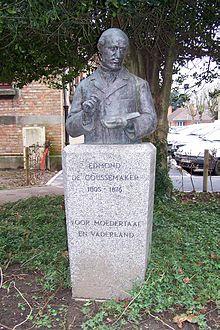 De Coussemaker founded the Comité flamand de France (Flemish Committee of France) in 1853, which was tasked with putting a brake on the disappearance of the West Flemish dialect of the Dutch language, as spoken in French Flanders. With the priest Jules Auguste Lemire, he tried to maintain Dutch education in Catholic schools, especially in Belle, but due to the secularisation of education made compulsory by law, the Catholic hierarchy lost its influence. This brought a fatal coup to the survival of the Flemish dialect.