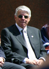 Although the Oilers' on-ice performance for most of the WHA's history was mediocre, they remained relatively well-supported and financially stable by WHA standards. In 1976, Hunter and Allard sold the franchise to Vancouver real estate tycoon Nelson Skalbania, who later became notorious for flipping property, both real and franchised.[17] Skalbania soon made local businessman Peter Pocklington a full partner, then sold his shares to him the following year. The team's fortunes improved dramatically in 1978 when Pocklington acquired underage player Wayne Gretzky,[18] as well as goaltender Eddie Mio and forward Peter Driscoll, for cash, from Skalbania's recently folded Indianapolis Racers.[19]