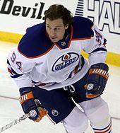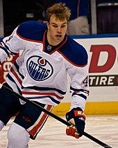 The 2010–11 season brought a new look to the Edmonton Oilers line-up, when Shawn Horcoff was selected to succeed Ethan Moreau as team captain. Horcoff had become the Oilers longest-serving player by this point.[112][113] Taylor Hall, Jordan Eberle, and Magnus Paajarvi-Svensson all made their NHL debuts for the team. Despite the influx of their young talent, Edmonton still found themselves at the bottom of the standings. In an attempt to gain valuable prospects and draft picks, Dustin Penner was traded from the Oilers to Los Angeles on February 28, 2011, in exchange for Colten Teubert, a first-round draft pick in 2011 (used to select Oscar Klefbom) and a conditional third-round pick in 2012.[114] At the end of the season, the Oilers were at the bottom of the standings and received the right to choose first overall in the upcoming 2011 NHL Entry Draft. The Oilers selected Ryan Nugent-Hopkins with the first overall selection, along with several other "blue chip" prospects. During the 2011 off-season, the team again made several moves to bolster the offence and defence, re-acquiring fan favourite Ryan Smyth from Los Angeles for Colin Fraser and a seventh-round draft pick.[115] The team also traded with the Anaheim Ducks to acquire Andy Sutton for Kurtis Foster. Sheldon Souray, who played the entire 2010–11 season in the American Hockey League (AHL) with the Hershey Bears, was bought out of the last year of his contract.[116] These moves, coupled with the signings of Eric Belanger, Cam Barker, Ben Eager, and Darcy Hordichuk, changed the complexion of the team, to add "grit and toughness". However, the Oilers were again unable to qualify for the playoffs for the sixth-straight season, as they finished 14th in the Western Conference.