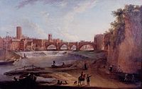 He is perhaps best known for his somewhat heavy British and Irish views such as Figures In The Grounds Of Hestercombe, Somerset and The Old Dee Bridge, Chester.