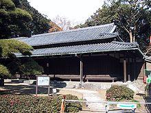 An eye-witness account is given by the French director François Caron from the Dutch colony at Dejima. He described the gates and courts being laid out in such a manner as to confuse an outsider. Caron noted the gates were not placed in a straight line, but were staggered, forcing a person to make a 90 degree turn to pass on to the next gate.[9] This style of construction for the main gates is called masugata (meaning "square"). As noted by Caron, the gate consisted of a square-shaped courtyard or enclosure and a two-story gatehouse which is entered via three roofed kōrai-mon. The watari-yagura-mon was constructed at adjacent angles to each side within the gate.[11] All major gates had large timbers that framed the main entry point and were constructed to impress and proclaim the might of the shogunate.