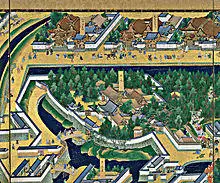 Edo Castle with surrounding residential palaces and moats, from a 17th-century screen painting.