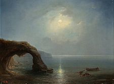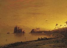 In oil he gradually produced less, in water colours more, than at first, and his fame must rest on the sketches which he made in the latter form, many of them represented by chromolithography. Fantasies in red, yellow and opal, sunset, sunrise and moonshine, distances of hundreds of miles like those of the Andes and the Himalaya, narrow streets in the bazaars of Cairo or Suez, panoramas as seen from mast-heads, wide cities like Bombay or Pekin, narrow strips of desert with measure-less expanses of skyall alike display his quality of bravura. Hildebrandt died at Berlin on 25 October 1868.[1]