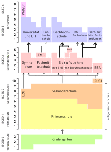 - ^ "Bildungslandschaft Schweiz 2012/13 (vereinfacht)" (PDF) (in German and French). Neuchâtel, Switzerland: Bundesamt für Statistik BFS, Sektion Bildungssystem. February 2010. Archived (PDF) from the original on 2014-09-28. Retrieved 2015-04-27.