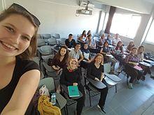 Every weekday early in the morning student oath was to be sung by students until it was abolished in 2013.[38] In every classroom, a portrait of Atatürk, lyrics of the National Anthem and text of Ataturk's Address to Turkish Youth are hung high up at the wall. In history lessons, nationalistic values are promoted[39] and denialism of Armenian Genocide is taught.[40]:787