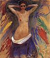 In 1903–04, Munch exhibited in Paris where the coming Fauvists, famous for their boldly false colors, likely saw his works and might have found inspiration in them. When the Fauves held their own exhibit in 1906, Munch was invited and displayed his works with theirs.[75] After studying the sculpture of Rodin, Munch may have experimented with plasticine as an aid to design, but he produced little sculpture.[76] During this time, Munch received many commissions for portraits and prints which improved his usually precarious financial condition.[77] In 1906, he painted the screen for an Ibsen play in the small Kammerspiele Theatre located in Berlin's Deutsches Theater, in which the Frieze of Life was hung. The theatre's director Max Reinhardt later sold it; it is now in the Berlin Nationalgalerie.[78] After an earlier period of landscapes, in 1907 he turned his attention again to human figures and situations.[79]
