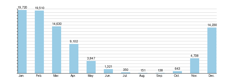 Eel River monthly mean discharge at Scotia (cfs)[7]