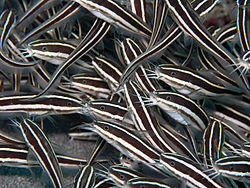 The eeltail catfish are a family (Plotosidae) of catfish whose tails are elongated in an eel-like fashion. These catfishes are native to the Indian Ocean and western Pacific from Japan to Australia and Fiji.[1] The family includes about 41 species in 10 genera.[1][2] About half of the species are freshwater, occurring in Australia and New Guinea.[1]