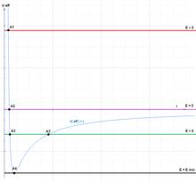 is the effective potential.[Note 1] The original two-variable problem has been reduced to a one-variable problem. For many applications the effective potential can be treated exactly like the potential energy of a one-dimensional system: for instance, an energy diagram using the effective potential determines turning points and locations of stable and unstable equilibria. A similar method may be used in other applications, for instance determining orbits in a general relativistic Schwarzschild metric.