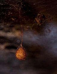 Females lay up to 3,000 eggs in one or more silk egg sacs,[11] which maintain a fairly constant humidity level.[41] In some species, the females die afterwards, but females of other species protect the sacs by attaching them to their webs, hiding them in nests, carrying them in the chelicerae or attaching them to the spinnerets and dragging them along.[11]