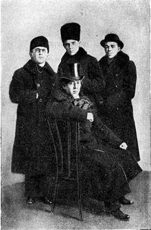 By 1913, groups inspired by Ego-Futurism began to appear, for example the 'Mezzanine of Poetry', a group founded by Vadim Shershenevich. It was dissolved by 1914, and Shershenevich joined the Cubo-Futurists.[6]