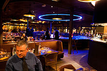 When built, the first level contained two restaurants: an "Anglo-American Bar", and a 250 seat theatre. A 2.6 m (8 ft 6 in) promenade ran around the outside.