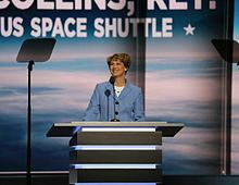 Eileen Marie Collins (born November 19, 1956) is a retired NASA astronaut and United States Air Force colonel. A former military instructor and test pilot, Collins was the first female pilot and first female commander of a Space Shuttle.[1] She was awarded several medals for her work. Colonel Collins has logged 38 days 8 hours and 20 minutes in outer space. Collins retired on May 1, 2006, to pursue private interests, including service as a board member of USAA.