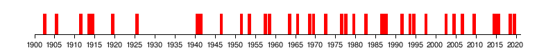 A timeline of all the El Niño episodes between 1900 and 2021.[13][14]