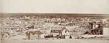 After the Civil War's conclusion, the town's population began to grow as Texans continued to move into the villages and soon became the majority. El Paso itself, incorporated in 1873, encompassed the small area communities that had developed along the river. In the 1870s, a population of 23 non-Hispanic Whites and 150 Hispanics was reported.[26] With the arrival of the Southern Pacific, Texas and Pacific, and Atchison, Topeka and Santa Fe railroads in 1881, the population boomed to 10,000 by the 1890 census, with many Anglo-Americans, recent immigrants, old Hispanic settlers, and recent arrivals from Mexico. The location of El Paso and the arrival of these more wild newcomers caused the city to become a violent and wild boomtown known as the "Six-shooter Capital" because of its lawlessness.[23] Indeed, prostitution and gambling flourished until World War I, when the Department of the Army pressured El Paso authorities to crack down on vice (thus "benefitting" vice in neighboring Ciudad Juárez). With the suppression of the vice trade and in consideration of the city's geographic position, the city continued into developing as a premier manufacturing, transportation, and retail center of the U.S. Southwest.