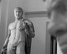 Following his assassination, many associates of Elagabalus were killed or deposed, including his lover Hierocles.[88] His religious edicts were reversed and the stone of Elagabal was sent back to Emesa.[91] Women were again barred from attending meetings of the Senate.[92] The practice of damnatio memoriae—erasing from the public record a disgraced personage formerly of note—was systematically applied in his case.[43][93] Several images, including an over-life-size statue of him as Hercules now in Naples, were re-carved with the face of Alexander Severus.[94]
