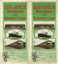 In the same period, the Ann Arbor Railroad operated a train a day south to and from Cadillac, Owosso, Durand, Ann Arbor, and then to its southern terminus in Toledo, Ohio.[11]
