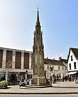 In 1596, it was described as "verie stately".[81] However, having fallen into decay, and having probably been further damaged during the Civil War, it was eventually demolished in 1701–02, to be replaced by a market cross. This was demolished in turn in 1810, although the town pump it contained survived a little longer. A drinking fountain was erected on the site by philanthropist Isabella Worley in 1874: this was relocated to Victoria Square nearby in the late 20th century.[80][82][83]