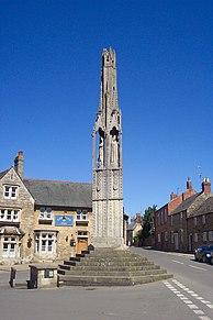Eleanor's bier spent the night of 5 December 1290, and possibly also that of 6 December, in Stamford, Lincolnshire.[34][35] The master mason for the cross here is not known: it was probably constructed in 1294 or 1295. There is conflicting evidence about its precise location, but it is now generally agreed that it stood just outside the town on the Great North Road (modern Casterton Road, the B1081), in what is today the Foxdale area.[38][39]