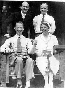 In the same years, Washington gossip linked Eleanor romantically with New Deal administrator Harry Hopkins, with whom she worked closely.[41] Roosevelt also had a close relationship with a New York State Police sergeant, Earl Miller, whom her husband had assigned as her bodyguard.[42] Roosevelt was 44 years old when she met Miller, 32, in 1929. He became her friend as well as official escort, taught her different sports, such as diving and riding, and coached her in tennis. Biographer Blanche Wiesen Cook writes that Miller was Eleanor's "first romantic involvement" in her middle years.[43] Hazel Rowley concludes, "There is no doubt that Eleanor was in love with Earl for a time ... But they are most unlikely to have had an 'affair'."[44]