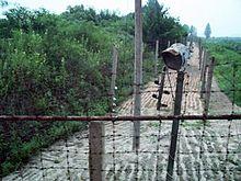 Sections of the inner German border were lined with a 3 m (10 ft) high electric fence to deter potential defectors from East Germany.[23] Similarly, the Czechoslovak border was lined with high electric fence during Cold War to prevent emigration from Czechoslovakia.