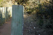 Electric fences are useful for controlling the movements of wild animals. Examples include deterring deer from entering private property, keeping animals off airport runways, keeping wild boar from raiding crops, and preventing geese from soiling areas used by people. Electric fencing has been extensively used in environmental situations reducing the conflict between elephants or other animals and humans in Africa and Asia.[13] However, electric fences are increasingly used in small livestock farming as a management tool to exclude animals, such as potential predators, that will tunnel under these fences to gain entrance to livestock camps. Electrified fences are also increasingly used on both domestic livestock and wildlife (game) farms in Africa as a management tool to exclude predators from entering or exiting a camp. A number of animal species, other than predators, may dig under these fences in order to cross that barrier.[14][15]