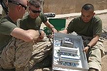 An electrician is a tradesman specializing in electrical wiring of buildings, transmission lines, stationary machines, and related equipment. Electricians may be employed in the installation of new electrical components or the maintenance and repair of existing electrical infrastructure.[1] Electricians may also specialize in wiring ships, airplanes, and other mobile platforms, as well as data and cable lines.