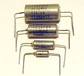 One of the first tantalum electrolytic capacitors were developed in 1930 by Tansitor Electronic Inc. USA, for military purposes.[20] The basic construction of a wound cell was adopted and a tantalum anode foil was used together with a tantalum cathode foil, separated with a paper spacer impregnated with a liquid electrolyte, mostly sulfuric acid, and encapsulated in a silver case.