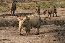 Because of their large size, elephants have a huge impact on their environments and are considered keystone species. Their habit of uprooting trees and undergrowth can transform savannah into grasslands; when they dig for water during drought, they create waterholes that can be used by other animals. They can enlarge waterholes when they bathe and wallow in them. At Mount Elgon, elephants excavate caves that are used by ungulates, hyraxes, bats, birds and insects.[82] Elephants are important seed dispersers; African forest elephants ingest and defecate seeds, with either no effect or a positive effect on germination. The seeds are typically dispersed in large amounts over great distances.[83] In Asian forests, large seeds require giant herbivores like elephants and rhinoceros for transport and dispersal. This ecological niche cannot be filled by the next largest herbivore, the tapir.[84] Because most of the food elephants eat goes undigested, their dung can provide food for other animals, such as dung beetles and monkeys.[82] Elephants can have a negative impact on ecosystems. At Murchison Falls National Park in Uganda, the overabundance of elephants has threatened several species of small birds that depend on woodlands. Their weight can compact the soil, which causes the rain to run off, leading to erosion.[78]