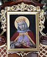 The reliquary chalice was subsequently plundered by Swedish troops during the Thirty Years' War and is now on display at The Swedish History Museum in Stockholm.[24] Her skull and some of her bones can be seen at the Viennese convent bearing her name. A portion of her relics were kept in the church of the Carmelites at Brussels; another in the magnificent chapel of La Roche-Guyon, upon the Seine, and a considerable part in a precious shrine is in the electoral treasury of Hanover.[25]