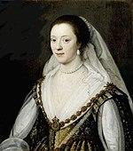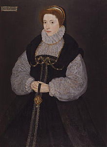 Elizabeth was 26 years younger than her second husband and had a disposition that was hot-tempered and articulate. They were said to be not compatible but at least well-matched.[15] By 1604, Elizabeth's marriage to Sir Edward Coke deteriorated and she was said to have become a formidable character and thorn at her husband's side.[16] They quarreled over their respective rights to the Hatton estate which Elizabeth had inherited from her first husband: the dispute became so bitter that the King intervened personally to mediate. Elizabeth had two daughters by her second husband, Frances Coke, Viscountess Purbeck, and Elizabeth Coke (who died unmarried).[9][11] Her daughter Frances was later married to John Villiers, 1st Viscount Purbeck, the elder brother of King James' favourite, George Villiers, 1st Duke of Buckingham, which was a major factor of marital strife between Elizabeth and her second husband.[13][17][18][19] For Elizabeth had opposed of the match (presumably because Villiers was generally believed to be insane) and sent her daughter Frances away from Hatton House in Holborn without informing her husband. Her plans were to keep Frances in a rented house with the help of her relatives. Elizabeth thus placed her daughter with Lady Withipole, daughter of Sir William Cornwallis, where she intended her daughter to be betrothed to Henry de Vere, 18th Earl of Oxford. However, her husband later located their daughter by chance and took her away, keeping her locked up by legal means in various houses of his friends. Then in September 1617, Frances was married at Hampton Court in the presence of the King and Queen to John Villiers. The marriage was a disastrous failure, and in 1621 Frances eloped with Sir Robert Howard, with whom she lived in an unofficial union for many years.