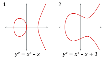 In mathematics, an elliptic curve is a smooth, projective, algebraic curve of genus one, on which there is a specified point O. Every elliptic curve over a field of characteristic different from 2 and 3 can be described as a plane algebraic curve given by an equation of the form